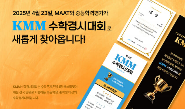 KMM 수학경시대회는 4월 23일 첫 시험을 시작으로, 매월 넷째 주 수요일부터 일요일까지 5일간 정기적으로 시행된다. 기존의 초등 대상 ‘MAAT 수학경시대회’와 중등 대상 ‘매쓰플랫 학력평가’를 통합해 모든 학년에 걸쳐 학생 개개인의 학업 성장을 점검할 수 있는 전국 단위 시험으로 기획됐다.