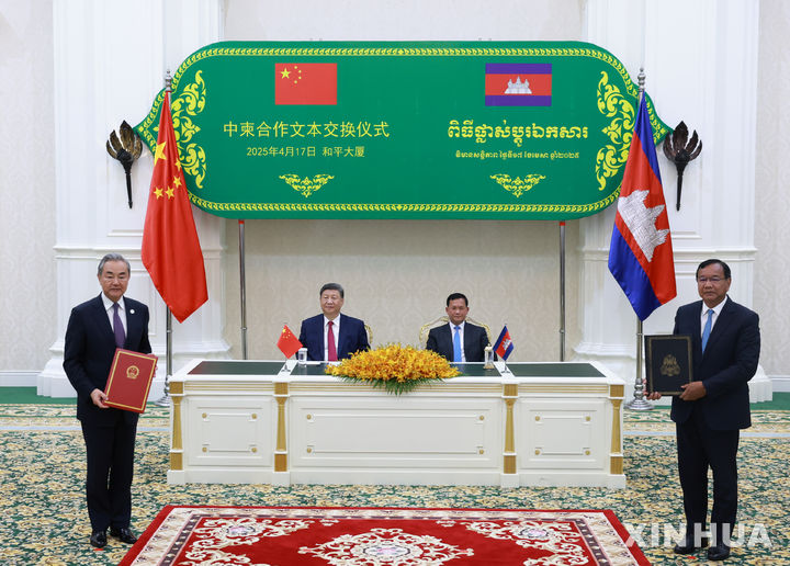 아울러 양 정상은 회담에서 ‘신시대 전천후 중·캄보디아 운명공동체’를 함께 구축한다는 데 합의하고 경제·무역, 투자, 산업·공급망, 농업, 인프라 등 각 분야에서 양국 간 협력을 강화하기로 했다. 또 올해를 ‘중·캄보디아 관광의 해’로 선언하고 교류를 확대하기로 했다.