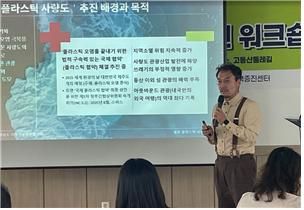 이번 워크숍은 박찬 경남지속협 사무처장의 ‘제로 플라스틱 사량도’ 추진배경과 목적을 설명하는 강연으로 시작했다.