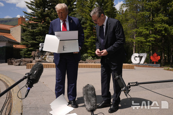 트럼프 대통령은 16일(현지 시간) 캐나다 카나나스키스에서 열린 주요 7개국(G7) 정상회의를 계기로 키어 스타머 영국 총리와 회담했다. 이후 기자회견을 통해 이같은 내용을 발표했다.