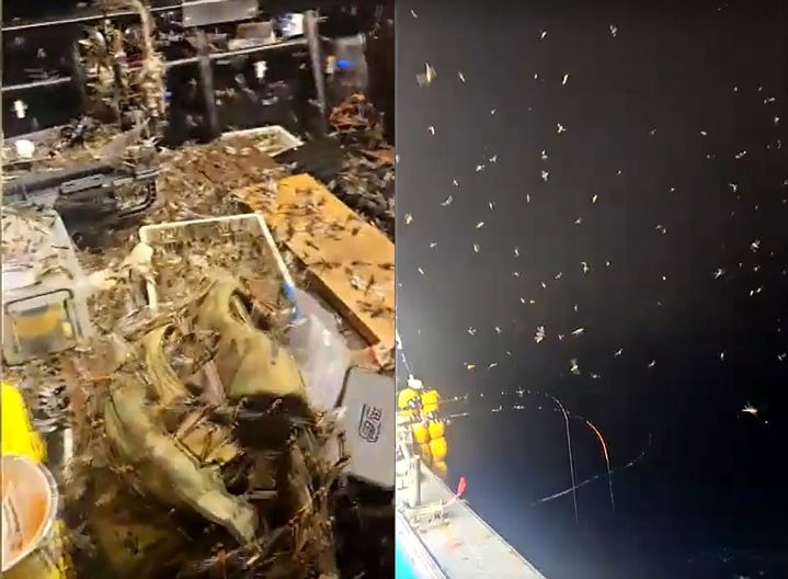 제주 어선 선장은 “잠자리 떼가 너무 많아서 배 전체를 뒤덮을 정도다. 사람한테도 다 달라붙어서 조업을 못 할 정도”라고 전했다.