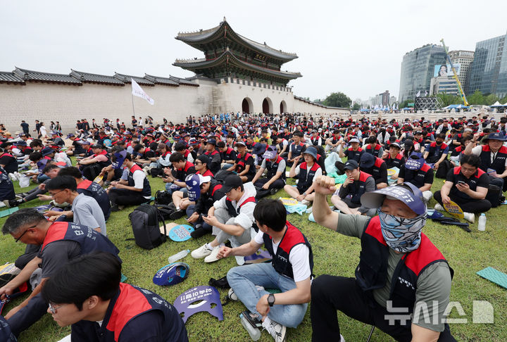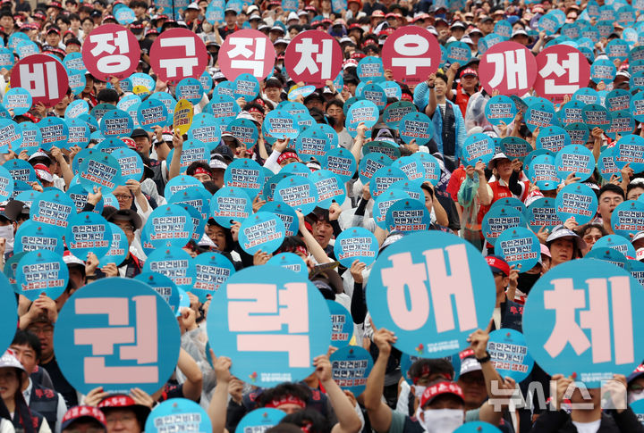 [서울=뉴시스]조성우 이수정 기자 = 양대노총 소속 공공부문 노동자들이 새 정부에 공공기관의 공공성을 강화할 것을 촉구했다.