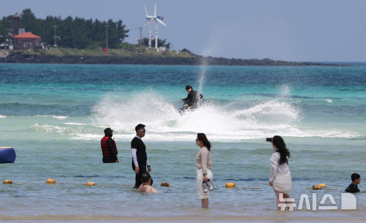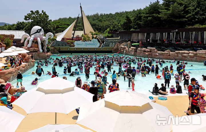 [서울·수원·대구·제주 =뉴시스]김종택 최진석 우장호 이무열 기자 = 6일 전국 대부분 지역에 폭염특보가 발효, 체감온도가 33도 이상 오르며 무더운 날씨가 이어졌다. 전국 곳곳에서 주말 나들이 객들이 폭염을 피해 워터파크, 해수욕장, 쇼핑몰 등을 찾아 더위를 식혔다. 오늘 밤사이 대부분 지역에 열대야가 이어질 것으로 보인다.
