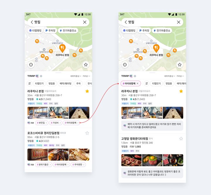 이번 서비스는 AI가 방대한 리뷰 데이터를 분석해 ‘#아이와함께’, ‘#주차편한’ 같은 해시태그를 자동 추출해 제공하는 방식이다. 사용자는 티맵 내 검색 결과에서 각 음식점별 해시태그를 한눈에 확인할 수 있다. 원하는 해시태그를 선택해 관련 맛집만 필터링해 탐색할 수도 있다.