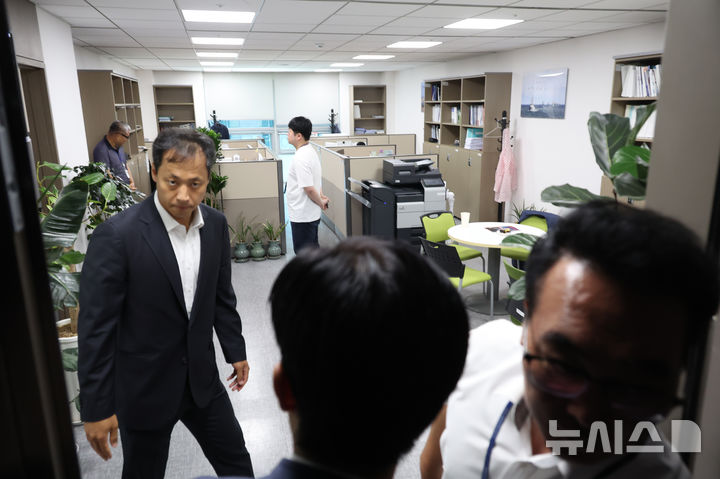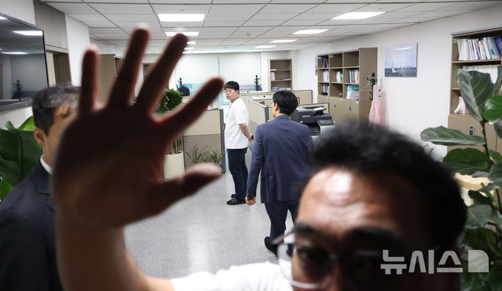 이날 압수수색 현장에는 송 위원장을 비롯해 국민의힘 의원 23명이 자리했다. 임 의원은 현장에 없었다.
