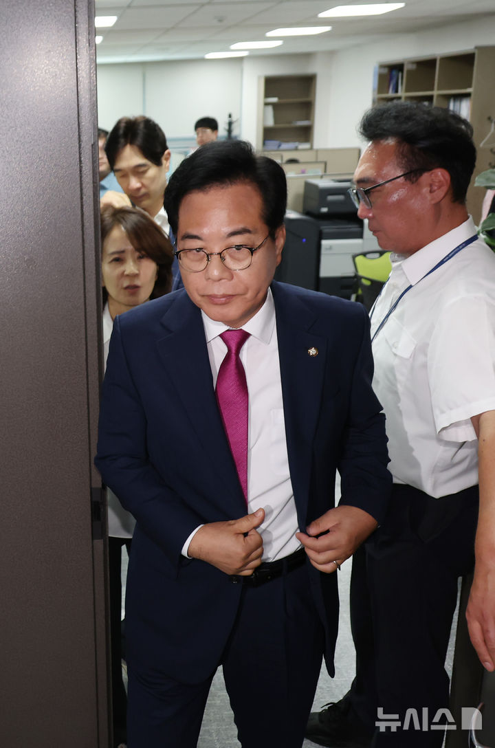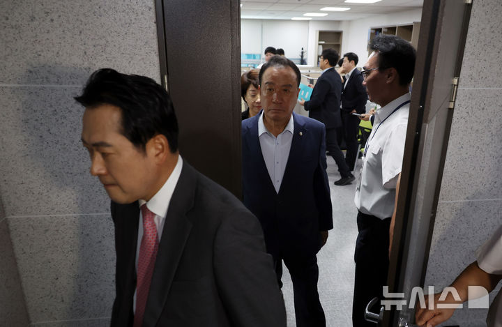 [서울=뉴시스] 류현주 고승민 하지현 한은진 기자 = 국민의힘 의원들이 11일 임종득 의원실에 집결해 채상병 순직 사건 수사 방해 의혹 등을 수사하는 순직해병 특검팀의 압수수색을 규탄했다.