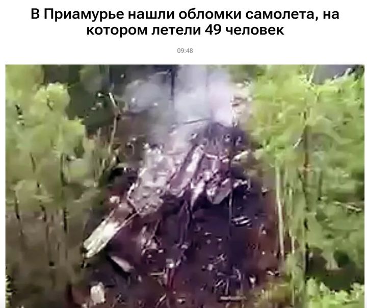 [서울=뉴시스]신정원 기자 = 24일(현지 시간) 러시아 극동 아무르주에서 49명이 탑승한 여객기가 추락했다. 러시아 당국은 동체를 발견했지만 현재 생존자는 확인되지 않았다고 밝혔다.