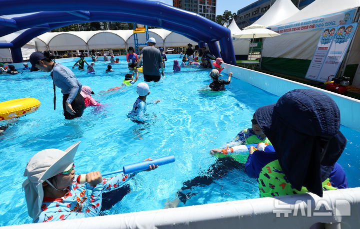[서울=뉴시스]최진석 기자 = ‘폭염 피해 집 앞 물놀이장 찾아 더위 식혀요’
