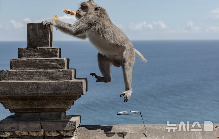 27일(현지시간) 월스트리트저널(WSJ)은 발리 울루와뚜 사원에서 관광객들 물건을 훔치는 원숭이들을 조명했다.