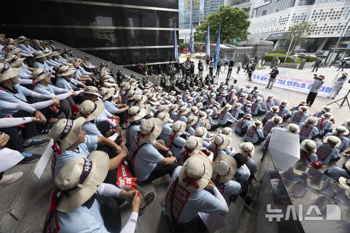 민주노총과 한국노총은 이날 오전 9시30분께 서울 용산구 용산역 광장에서 양대노총 결의대회를 개최했다.