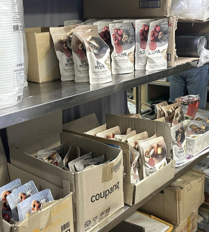 사진 속 제품은 들깨버섯죽, 소고기죽, 버섯야채죽, 전통미역죽 등 다양했다. 해당 제품은 이날 기준 공식 홈페이지에서 ‘1+1’ 행사 중으로, 50% 할인된 4980원에 구매할 수 있다. 쿠팡 등 온라인 쇼핑몰에서는 6개 세트 1만3900원(개당 약 2316원), 9개 세트 2만6900원(개당 약 2988원)에 판매 중이다.