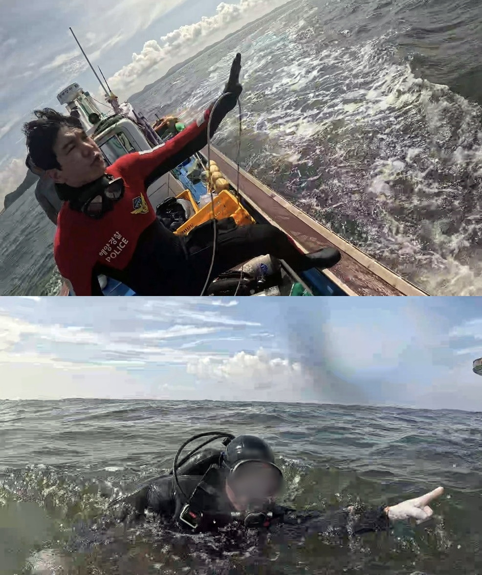 해경 구조대는 인근 해상을 수색한 끝에 신고 35분 만에 50대 잠수부 A씨를 안전하게 구조했습니다.