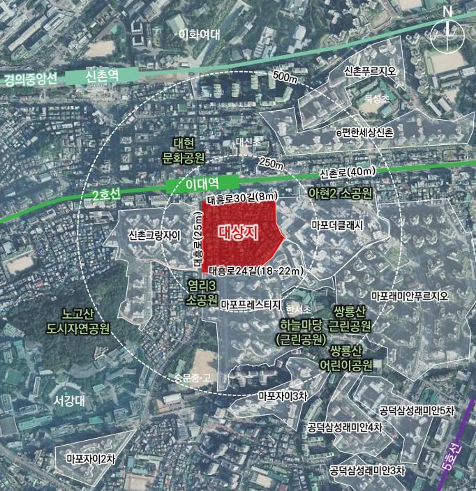 이 지역은 총 1120세대가 공급되며, 임대주택 258세대가 포함돼 공공성도 확보했다. 지역을 위한 기반시설로는 도로, 공원, 사회복지시설 등이 들어서며, 이대역부터 아현 재정비촉진지구 내 주요 시설을 연결하는 남북간 공공보행통로도 신설된다.