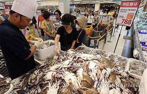 이마트는 오늘부터 24일까지 사흘간 신세계포인트를 적립한 고객에게 꽃게를 100g당 760원에 판매하는데, 당초 행사 가격을 788원으로 정했다가 하향 조정했습니다.