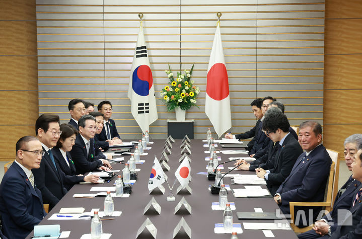 이재명 대통령과 이시바 시게루 총리는 이날 오후 일본 도쿄 총리 관저에서 소인수 회담·확대 회담으로 이어진 정상회담을 약 2시간 가량 가졌다. 양국 정상은 회담 종료 후 취재진 앞에 서서 이시바 총리, 이 대통령 순으로 언론 공동발표문을 읽었다.