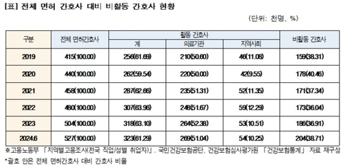 비활동 간호사는 2019년 15만9천명에서 작년 6월 20만4천명으로 4만5천명 늘어 전체 면허 소지자의 38.7%를 차지했습니다.