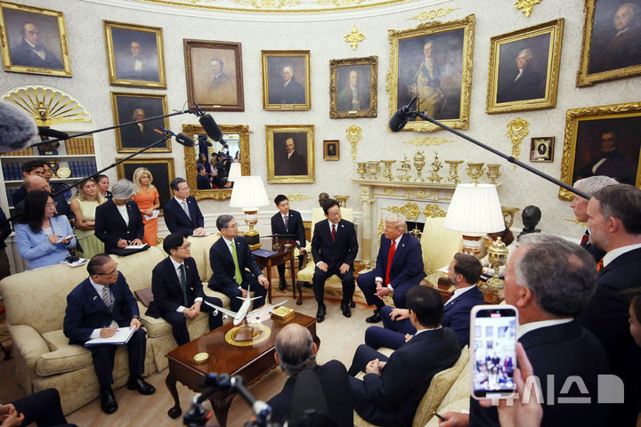 이어 양 정상은 트럼프 대통령의 집무실인 오벌 오피스에 나란히 앉아 본격적인 정상회담을 시작했다.
