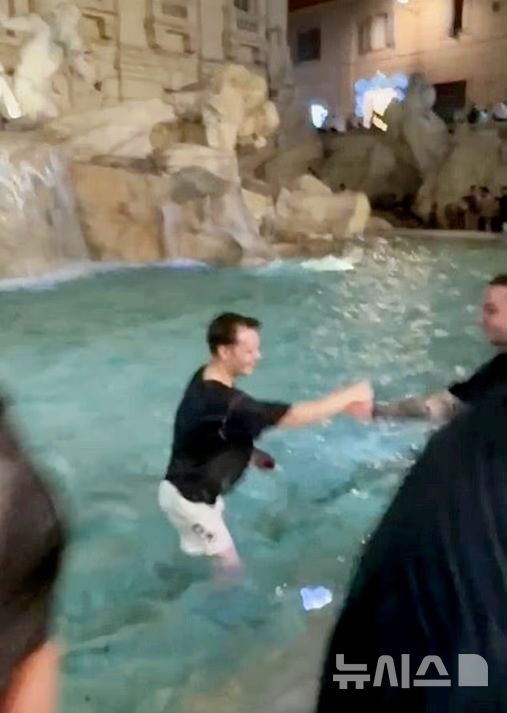 [서울=뉴시스] 강세훈 기자 = 이탈리아 로마의 유명 관광지 트레비 분수에 뛰어든 남성이 경찰에 연행됐다.