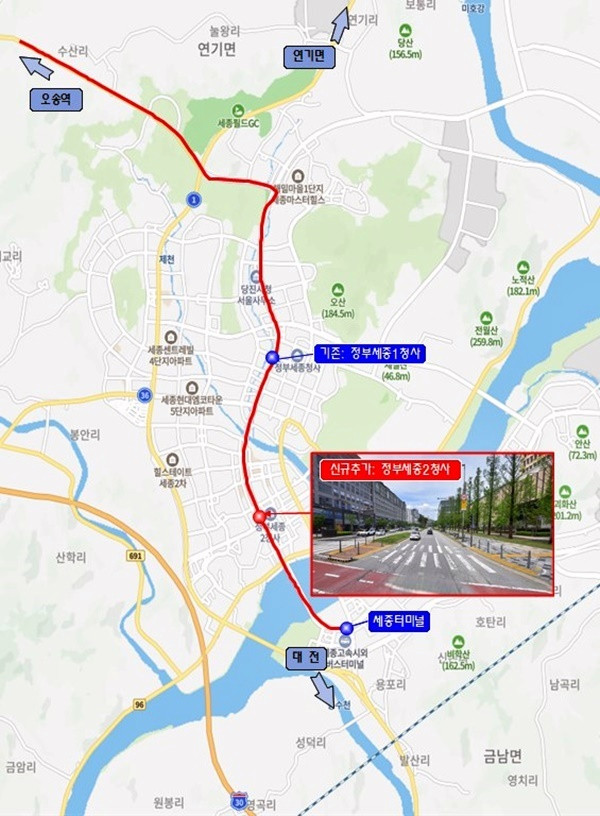 고속버스 노선은 세종터미널과 정부세종제1청사를 지나 서울경부터미널로 향하던 기존 노선에 정부세종제2청사(나성동) 정류소가 새로 포함됐습니다.