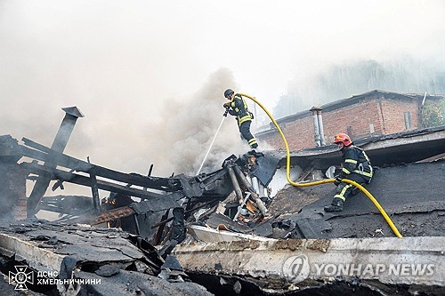 3일 공습으로 화재가 발생한 흐멜니츠키 건물[로이터=연합뉴스 자료사진 제공][로이터=연합뉴스 자료사진 제공]블라디미르 푸틴 러시아 대통령이 중국 전승절 열병식을 참관하는 동안 러시아가 우크라이나 전역에 대대적인 공습을 펼쳤습니다.