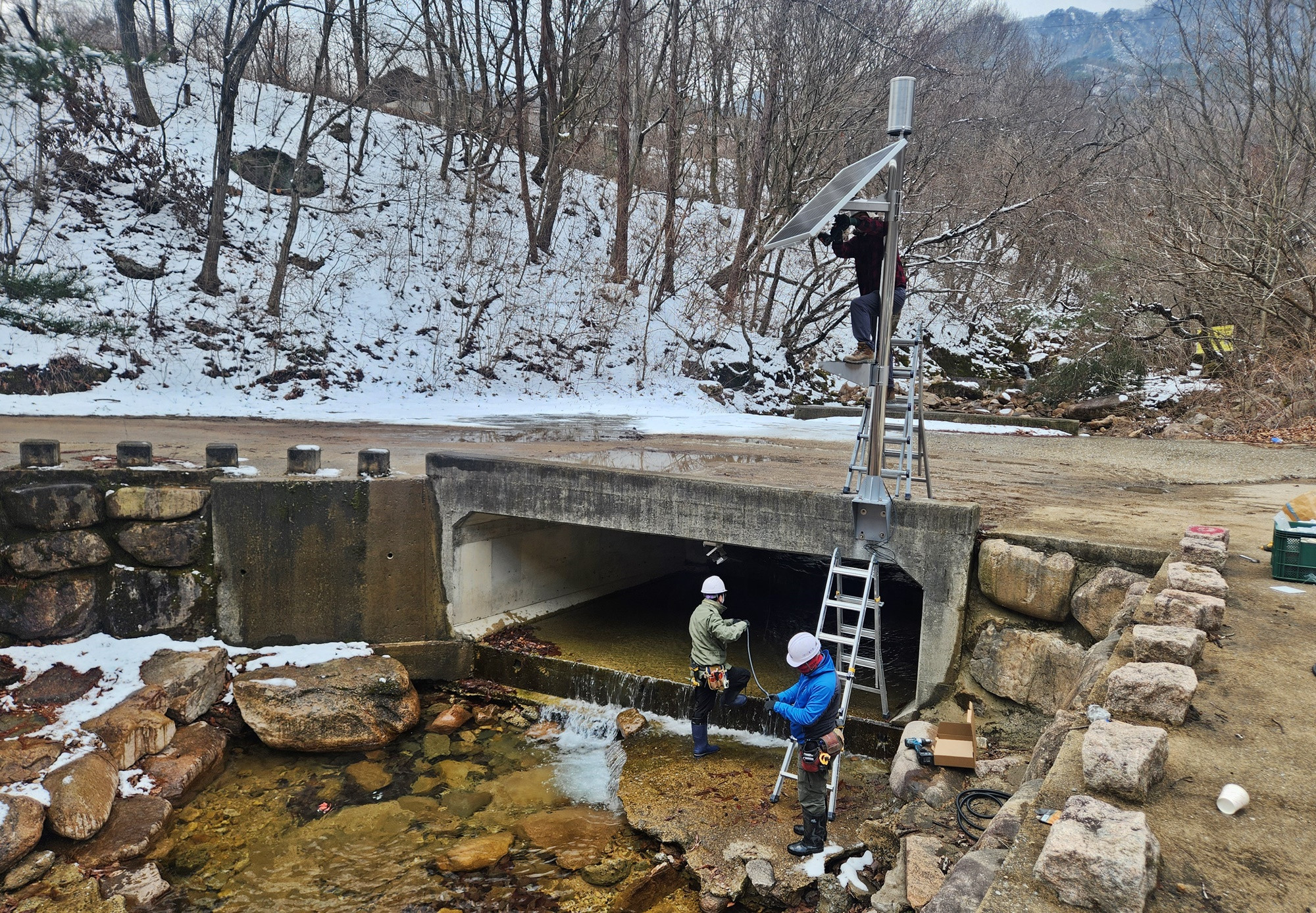 산림유량관측망 구축 장면[국립산림과학원 제공. 재판매 및 DB 금지][국립산림과학원 제공. 재판매 및 DB 금지]산림청 국립산림과학원은 극한 호우에 따른 산지 재난에 대응하기 위해 2031년까지 전국 400곳에 산림유량관측망을 구축한다고 오늘(5일) 밝혔습니다.
