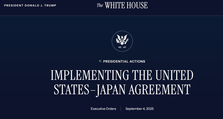 백악관은 이날 이 같은 내용의 ‘미일 합의 이행’이라는 행정명령에 트럼프 대통령이 서명했다고 발표했다.
