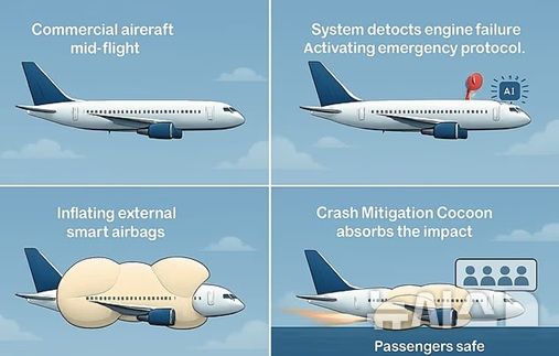 [서울=뉴시스] 강세훈 기자 = 자동차 에어백처럼 비행기에도 사고 시에 외부에 에어백을 펼치는 아이디어가 공개돼 화제를 모으고 있다.