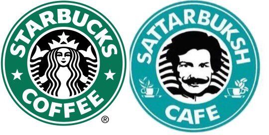 카페 로고는 초록 원 안에 콧수염을 기른 남성의 얼굴을 담았는데 이는 스타벅스의 ‘인어 로고’를 연상시켰다. 카페 이름도 ‘스타벅스’와 발음이 유사한 ‘사타르 벅시’였다.