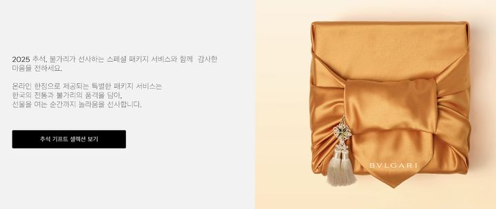 20일 유통 업계에 따르면 이탈리아 주얼리 브랜드 불가리(BVLGARI)는 최근 공식 온라인몰에서 보자기 포장과 노리개 장식을 포함한 스페셜 패키지를 제공하는 프로모션을 시작했다.