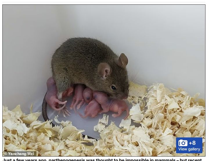 중국 연구진은 지난 2022년 유전자 편집 기술인 크리스퍼(CRISPR)를 활용해 생쥐의 난자를 인공적으로 활성화시켜 처녀생식을 달성했다. 이 중 한 마리는 건강하게 성장해 번식까지 성공했다. 이 연구는 유전적 조작이 인류에도 처녀 생식을 유도할 가능성이 있음을 시사했다.