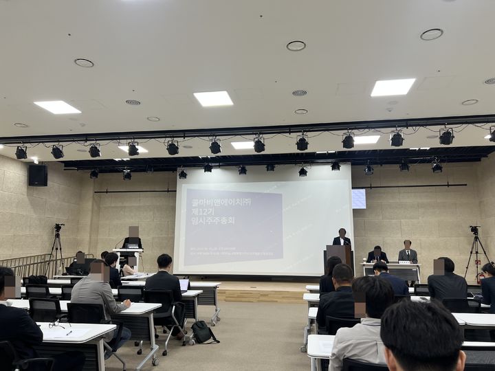 이날 임시주총을 개최한 콜마홀딩스는 출석 주식 수를 확인한 후 곧바로 제1호 의안인 임시의장 선임의 건과 제2호 의안인 이사 선임의 건에 대한 표결을 진행했다.