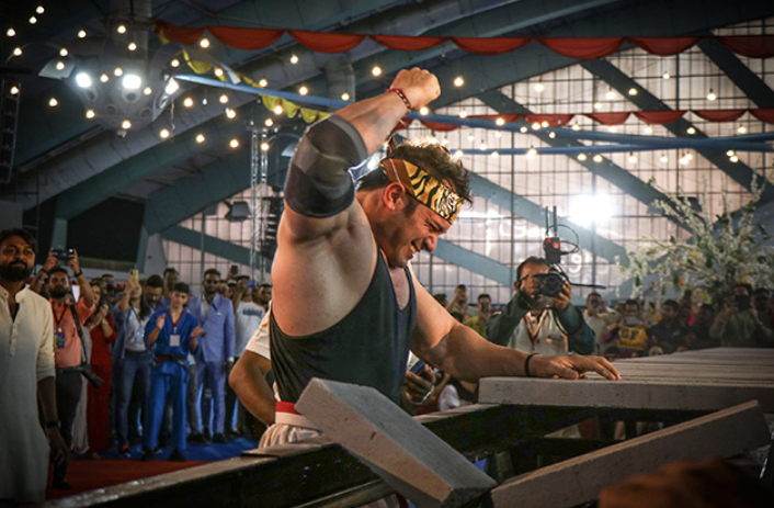 양손으로 261kg 기둥 붙잡고 버텨…’인도의 철인’ 17번째 기네스 신기록