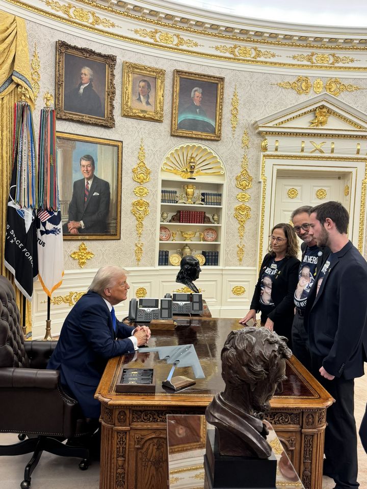 7일(현지 시간) 타임스오브이스라엘에 따르면 트럼프 대통령은 이날 오전 하마스에 의해 살해된 미국-이스라엘 이중 국적자 오메르 노이트라의 가족을 백악관에서 만났다.