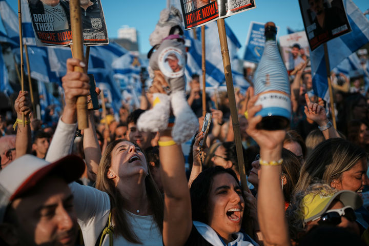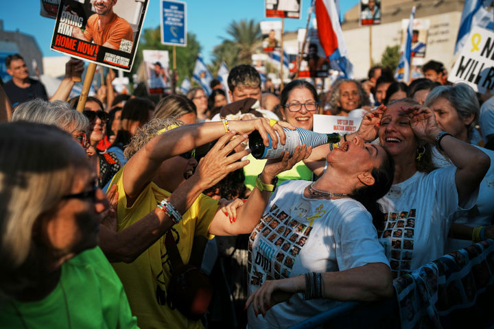 텔아비브 인질 광장에 모인 이스라엘인들은 석방 과정을 지켜보며 환호하고 눈물을 흘리기도 했다.