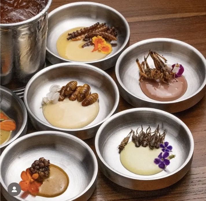예를 들면 구운 대나무벌레를 된장과 코코넛 가루를 섞은 마요 디핑 소스에 찍어 맛볼 수 있다. 바삭한 식감과 은은한 단맛이 난다고 한다. 물장군에는 시나몬과 꿀을 넣고 구운 쌀가루를 뿌려 제공한다. 곤충 에센스를 넣은 멕시코산 증류주 ‘메스칼'(Mescal) 등도 함께 즐길 수 있다.