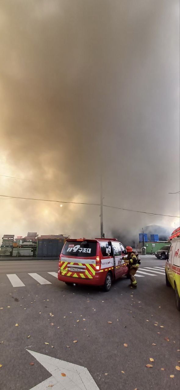 화재로 인해 다량의 연기가 발생하면서 오산시는 통행 우회와 창문을 닫아달라고 당부하는 안전 문자를 보냈다.
