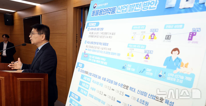 [세종=뉴시스]임소현 기자 = #. “동물용 의약품 신약은 세계적으로 실시간으로 경쟁하고 있는 시간 싸움이거든요. 누가 누가 잘하나 시장을 선점하는 사람이 승자가 되는 것이기 때문에 항상 그 업체들은 허가를 좀 최대한 빨리 내주십사 요청합니다. (규제 합리화) 속도를 내야 하는 이유입니다.”(정병곤 한국동물약품협회장)