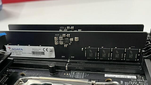 데스크톱 PC용 메인보드에 장착된 DDR5 메모리 모듈. (사진=지디넷코리아)