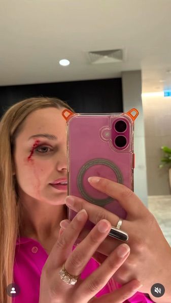 그녀는 이런 당황스러운 상황 속에서도 화장실로 가 얼굴에서 피가 흐르고 눈이 멍든 자신의 모습을 셀카로 촬영했다.