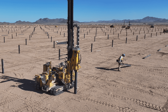 미국 애리조나주 태양광발전소 건설 현장의 파일드라이버에 스패너의 X1 키트가 장착된 모습 (사진=스패너)