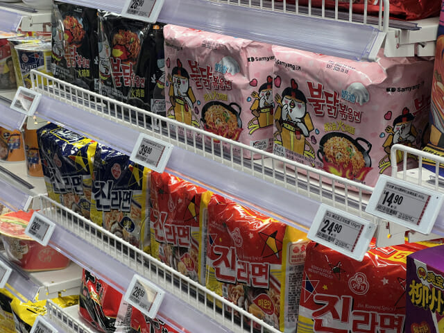 중국 한 마트에 진열되어 있는 한국 라면 (사진=지디넷코리아)