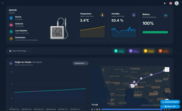 특히 수집된 모든 물류 데이터는 블록체인에 자동 기록되어 위·변조가 원천적으로 불가능하다. 기존 수기 관리 방식에서 발생하던 입력 오류나 누락을 방지하고 누가 언제 어떤 환경에서 물품을 관리했는지 투명하게 추적할 수 있어 글로벌 바이오 물류 시장에서 가장 중요한 ‘신뢰도’ 문제를 기술적으로 해결했다는 평가다.