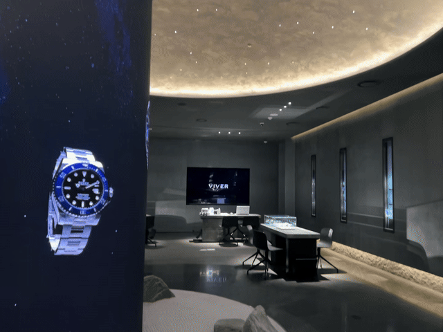 직원 설명에 따르면 매장 전체는 크라운, 다이얼, 인덱스, 무브먼트 등 시계 구조를 공간으로 풀어낸 설계다. 매장 직원은 “이 공간 자체가 하나의 시계가 되도록 기획했다”며 “고객이 매장을 도는 동선이 곧 시계 내부를 여행하는 콘셉트”라고 설명했다.