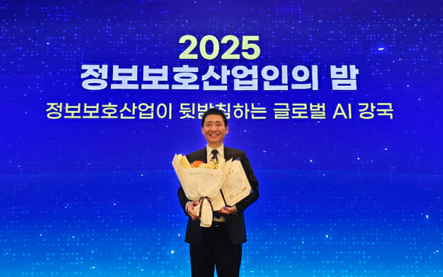 보안 소프트웨어 전문기업 에브리존의 홍승균 대표가 9일 서울 강남 노보텔 앰베세더 호텔에서 열린 ‘2025 정보보호 산업인의 밤’ 행사에서 보안산업 발전에 기여한 공로를 인정받아 과학기술정보통신부 장관상을 수상했다.