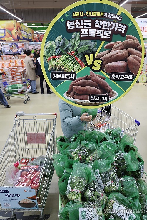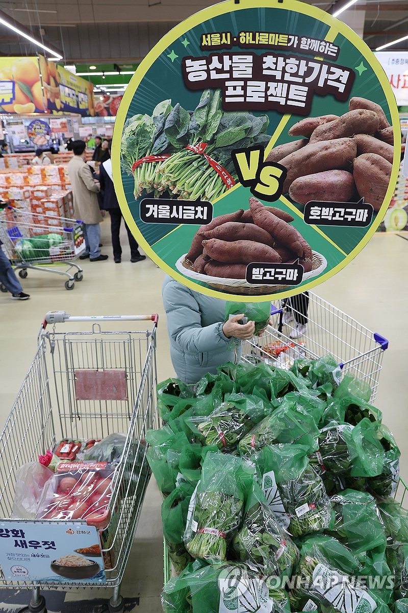 (서울=연합뉴스) 박동주 기자 = 서울시는 연말연시 장바구니 부담을 덜기 위해 감자, 고구마, 양파, 시금치 등 소비 빈도가 높은 농산물 4개 품목을 최대 56% 할인하는 행사를 한다고 밝혔다.