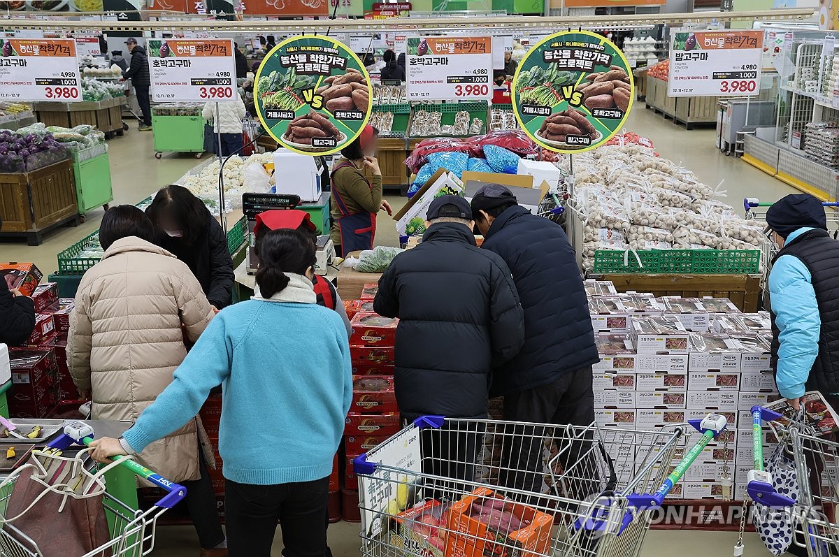 사진은 11일 서울 하나로마트 양재점에 걸린 관련 행사 안내문과 장보는 시민들. 2025.12.11