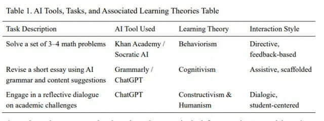 텍사스대학교 알링턴 캠퍼스의 프라타메시 무줌다르 연구팀은 대학생 15명을 대상으로 실험을 진행했다. 연구팀은 AI 학습 도구가 정보 전달을 넘어 다양한 교육 이론을 실현하고 있다는 사실을 발견했다. 학생들이 칸 아카데미, 그래머리, 챗GPT 등을 사용하는 모습을 분석한 결과다. 각 도구는 행동주의, 인지주의, 구성주의, 인본주의 등 서로 다른 학습 이론의 원리를 반영하고 있었다.