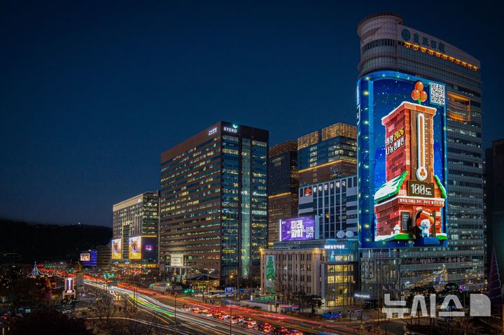 광화문광장 방향의 곡면 전광판은 전광판의 곡률을 활용해 ‘온도계의 수은주’가 서서히 차오르는 모습으로 표현했다.