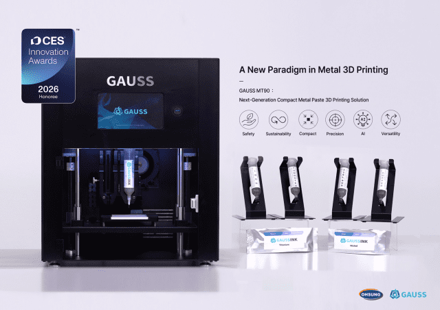오성시스템은 금속 페이스트 적층방식 3D프린터 ‘가우스(Gauss) MT90’이 CES 2026 로보틱스 분야 혁신상을 수상했다고 14일 밝혔다.