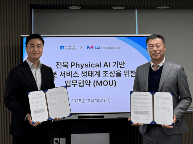 김민교 빅웨이브로보틱스 대표는 “이번 협약은 피지컬 AI 기반 사업 모델의 지역 단위 성공 공식을 확립하는 의미 있는 출발점”이라며 “현장 중심의 실증과 사업화를 통해 로봇 서비스의 실질적 활용 가치와 수익성을 높여 나가겠다”고 밝혔다.